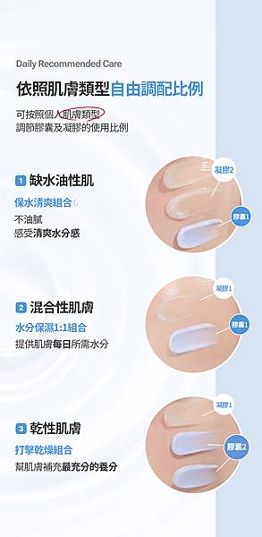 參考了官網還可以按照不同肌膚類型,自行調配凝膠跟膠囊乳霜的比例喔,貼心呢!!