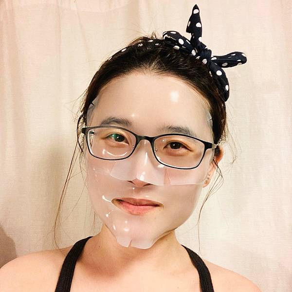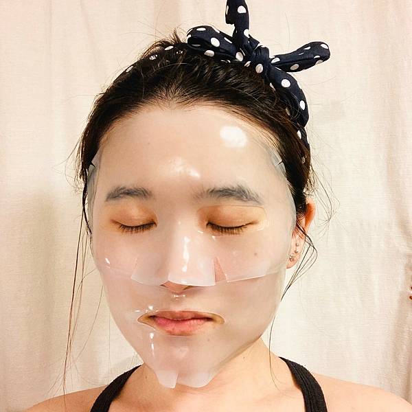 果凍面膜有分為上下兩區塊,先貼下半部後,再貼上半部,就完整覆蓋臉